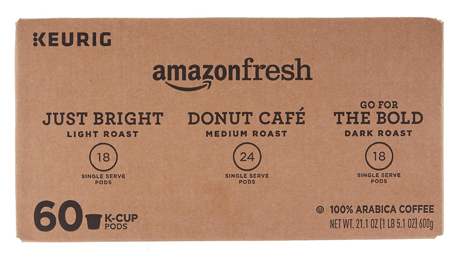 Whether you prefer coffee that’s bright or bold, crisp or complex, AmazonFresh k-cups make brewing a fresh cup easy and delicious. Using only high-quality Arabica beans, we expertly roast our light, medium, and dark roast coffee to unlock rich aromas and layers of flavor in our k-cups. Always flavorful, always convenient, always on hand, your favorite coffee is ready when you are.