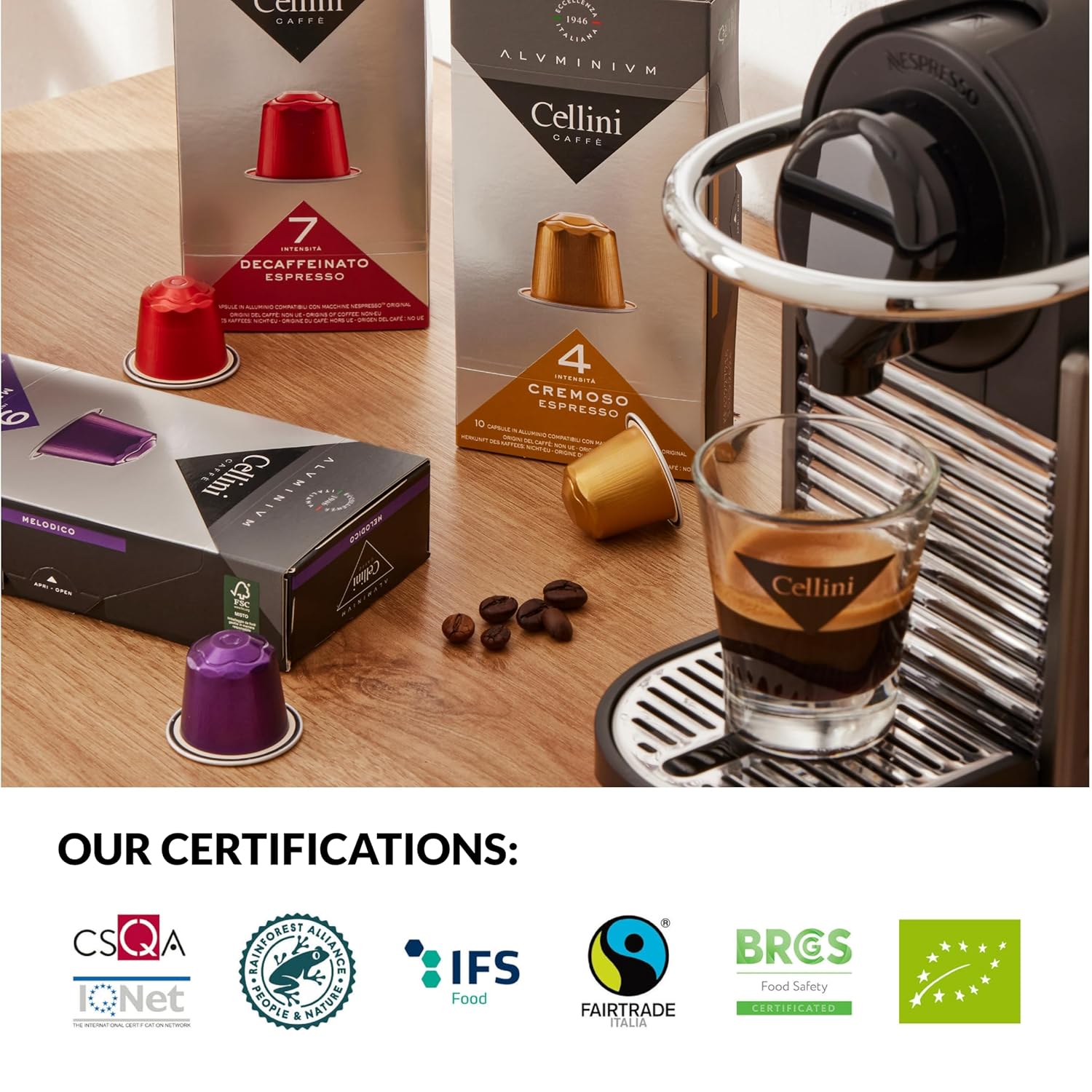 Cellini Caffè Mixed Variety Aluminum Nespresso Pods, 8 Distintive Italian Flavors, 100% Nespresso Original Machine Compatible, 80 Count, Medium to Strong Roast Coffee Capsules