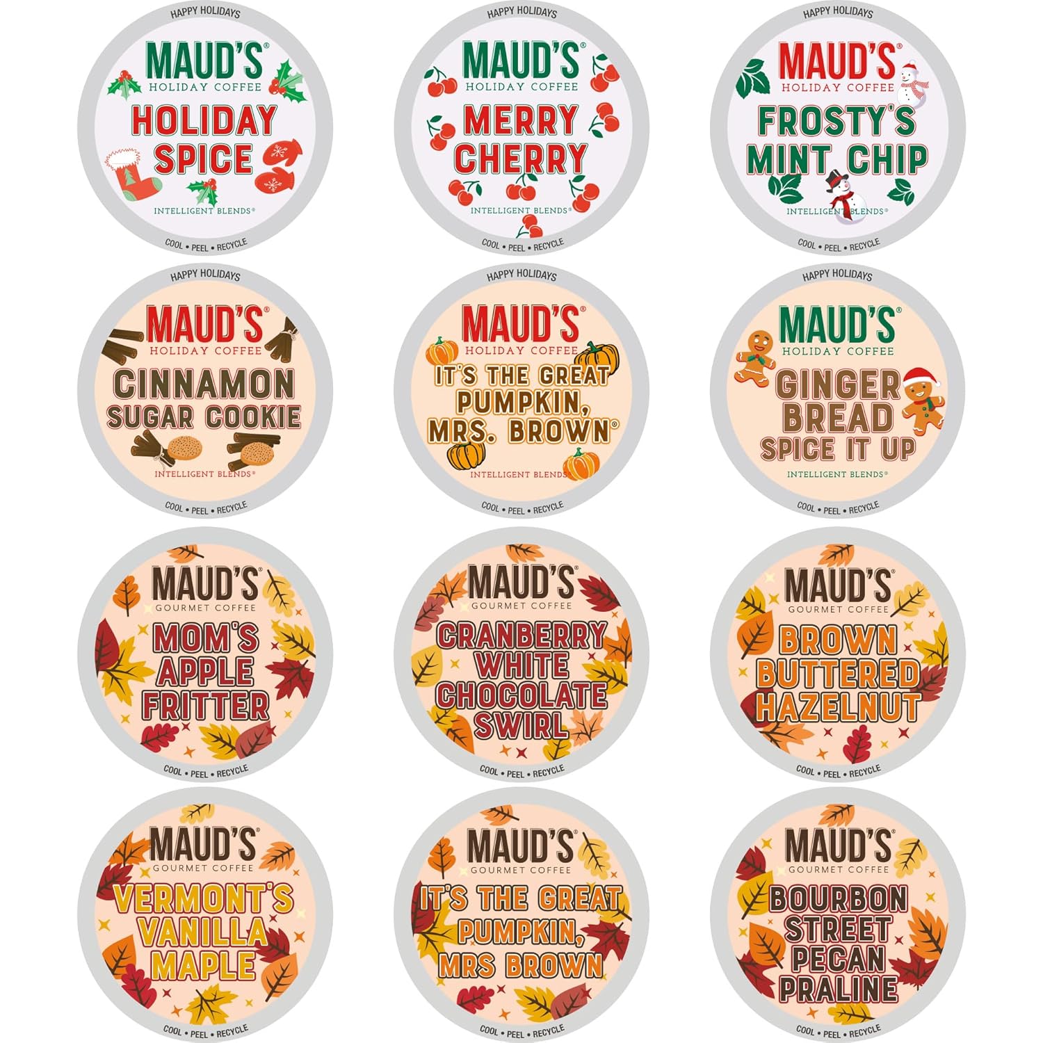 Maud’s Super Flavored Coffee Pods Variety Pack, 80 ct, 16 Assorted Flavors, Medium Roast Flavored Coffee in Recyclable Single Serve Pods u2013 100% Arabica Beans, Compatible with Keurig K Cups Maker